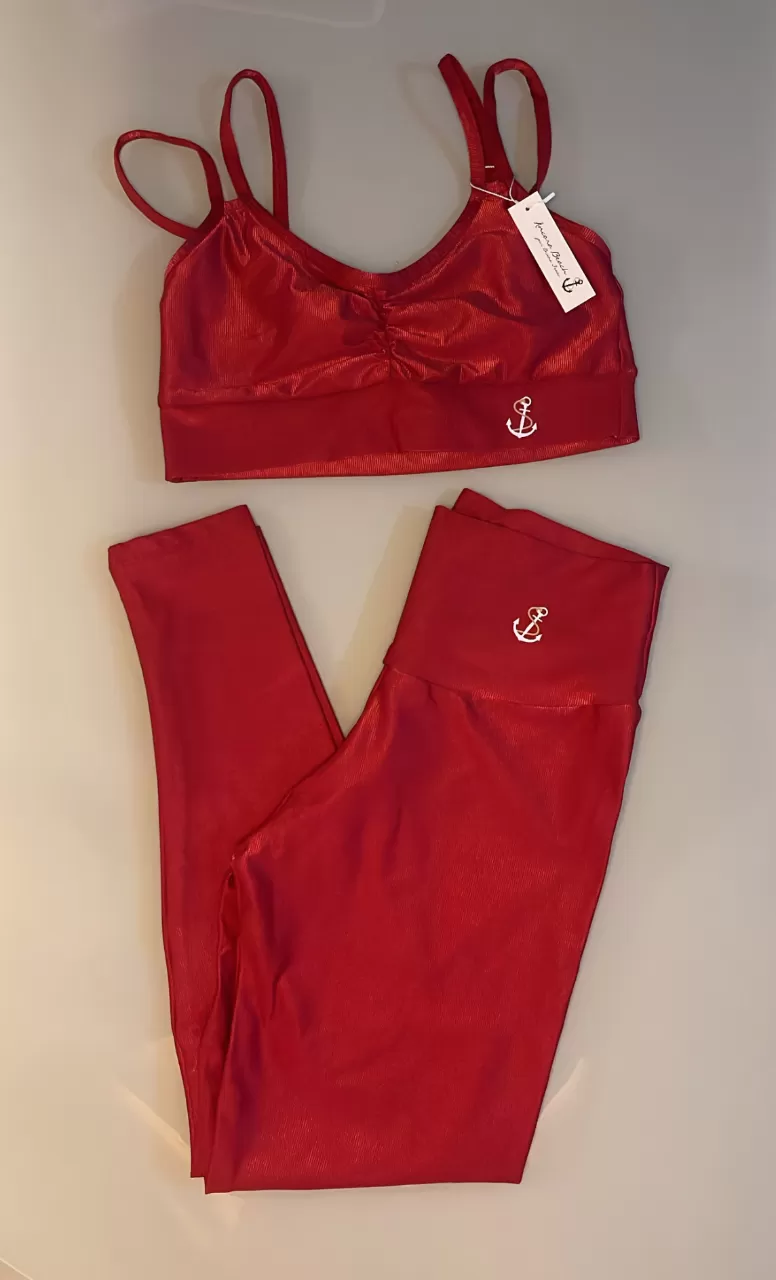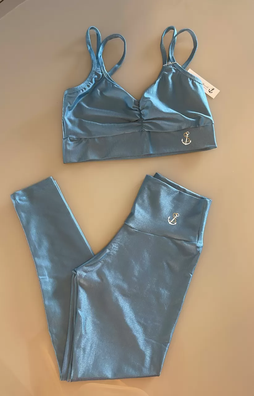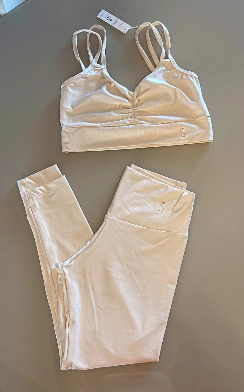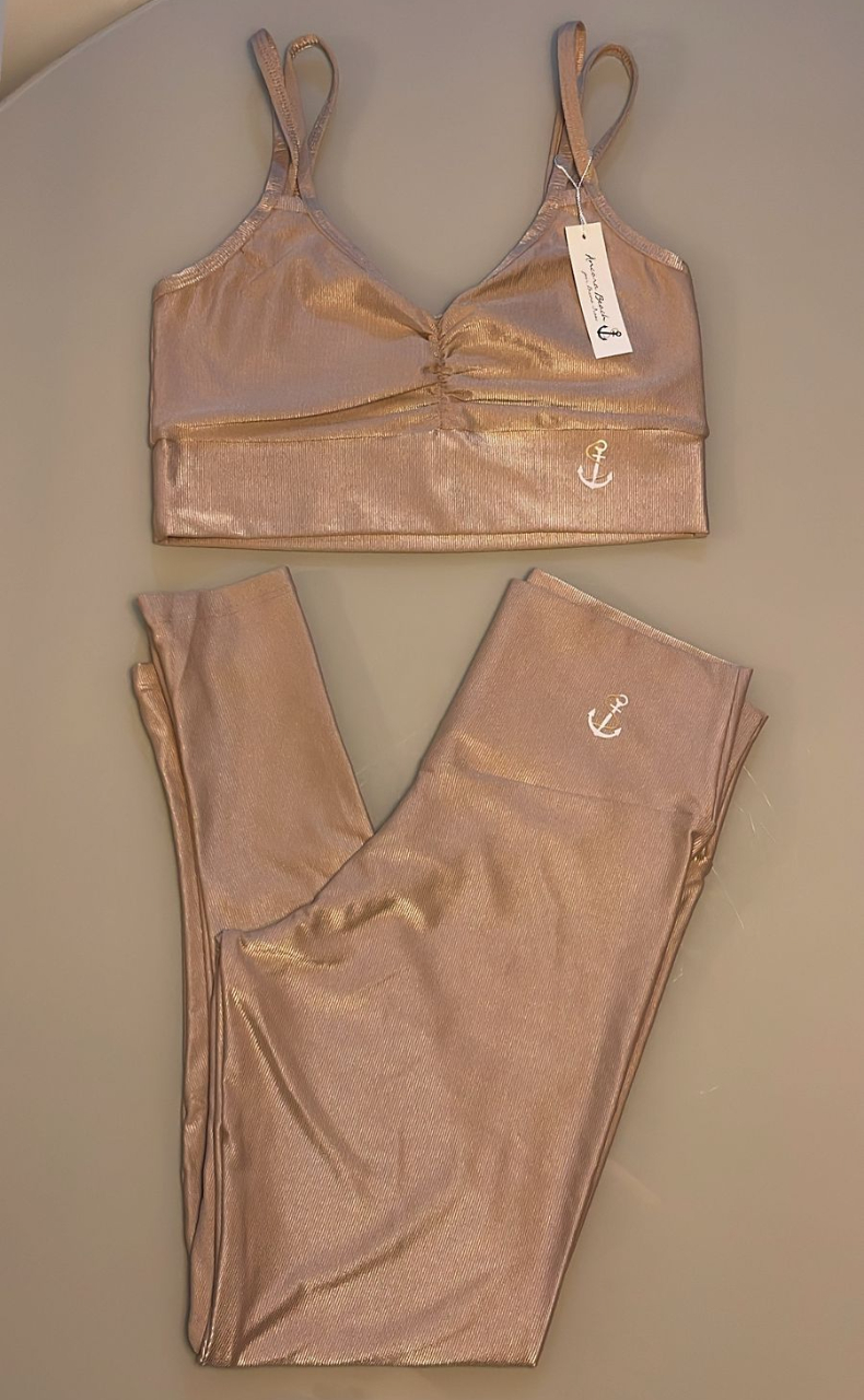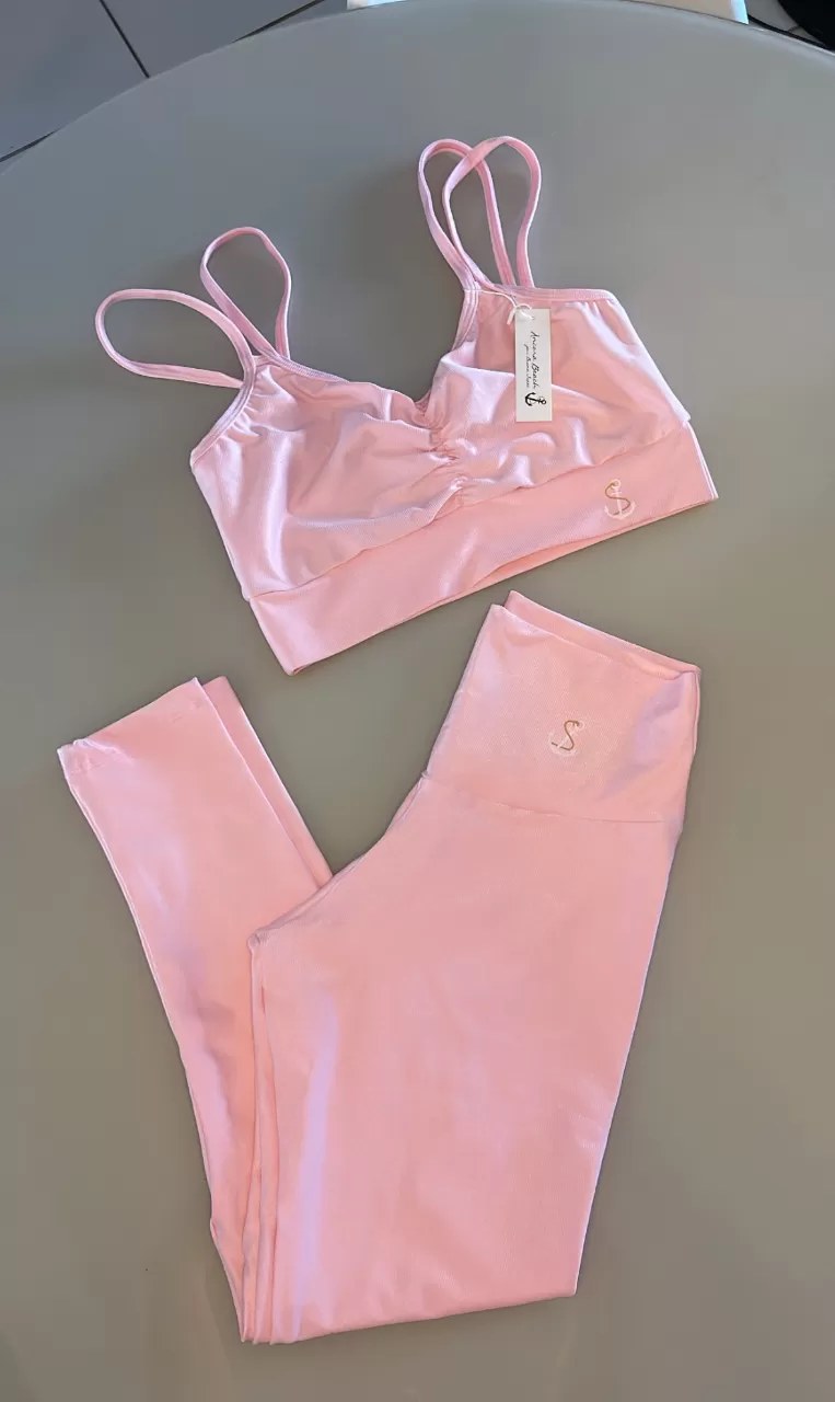 Conjunto De Calça Canelado De Compressão Top Duas Tiras